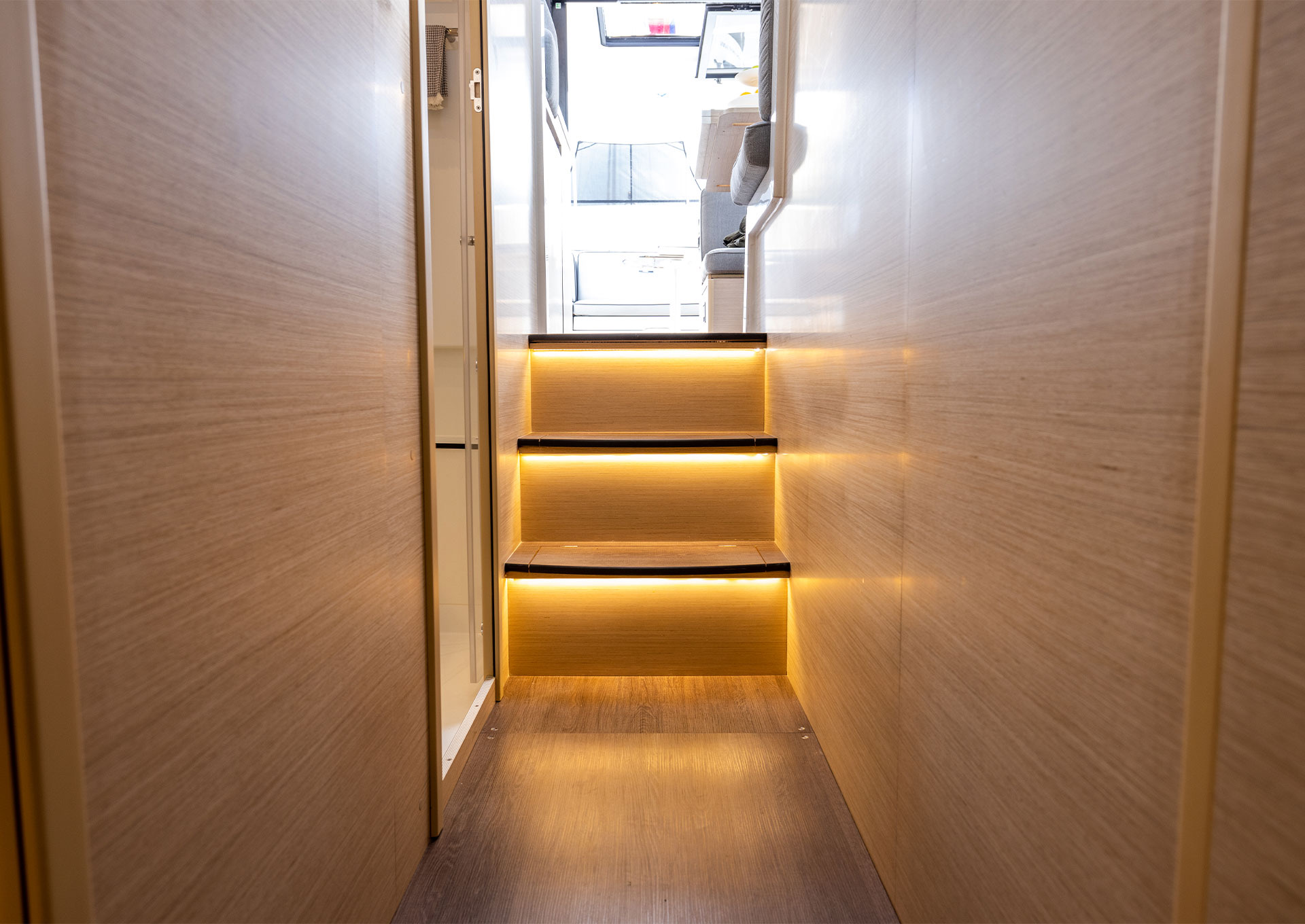 • Walnut interior incl. Grey oak style laminated floorboards - 2 cabins, 1 toilet, separate shower room