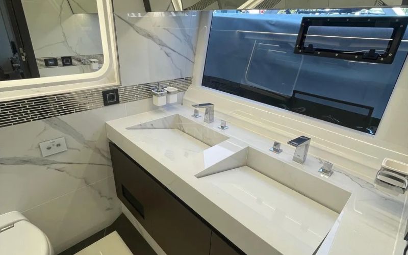 • Master bedroom with a private entrance: Separate access to the mid-cabin, which also has its own bathroom.