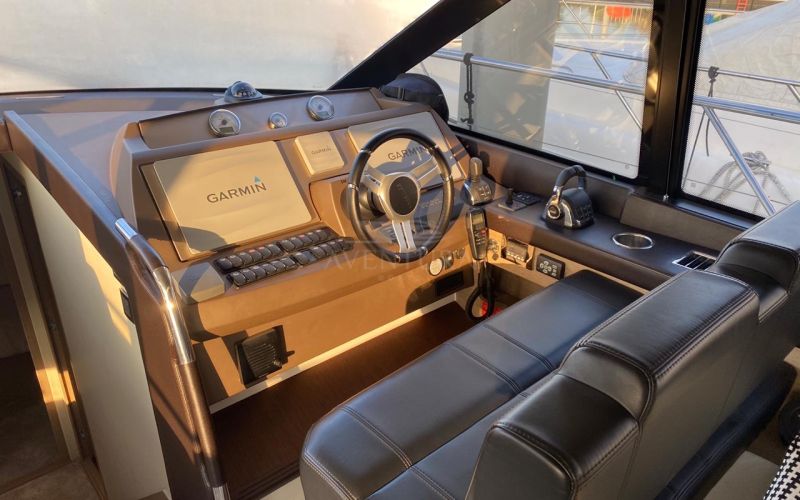 The Prestige 500 Fly motor yacht is a luxury boat known for its refined elegance, first-class workmanship and its ability to impress both in the open sea and in port. The 500 Fly features a spacious flybridge, seamless indoor-outdoor flow on the main deck, and multiple cabins including a master with en-suite. It combines luxury, elegance and high performance.