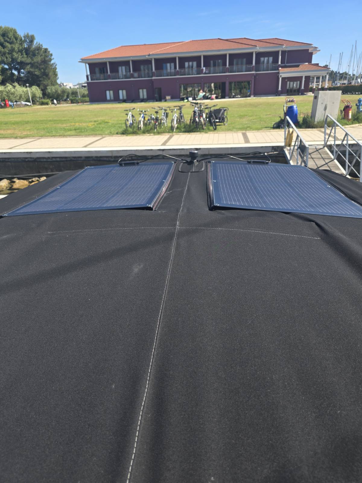 • 2× 110 W photovoltaic panels mounted on the bimini