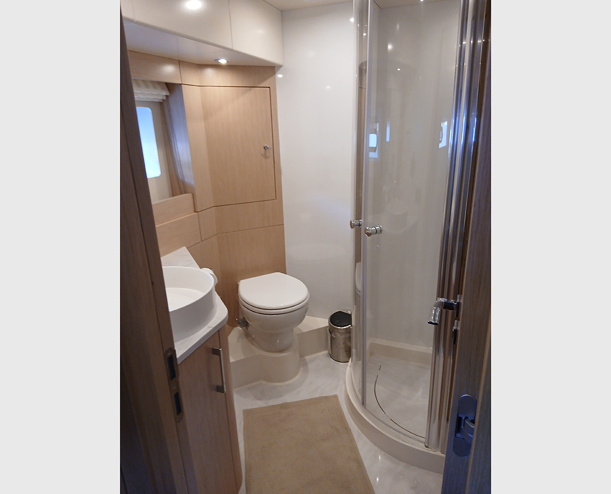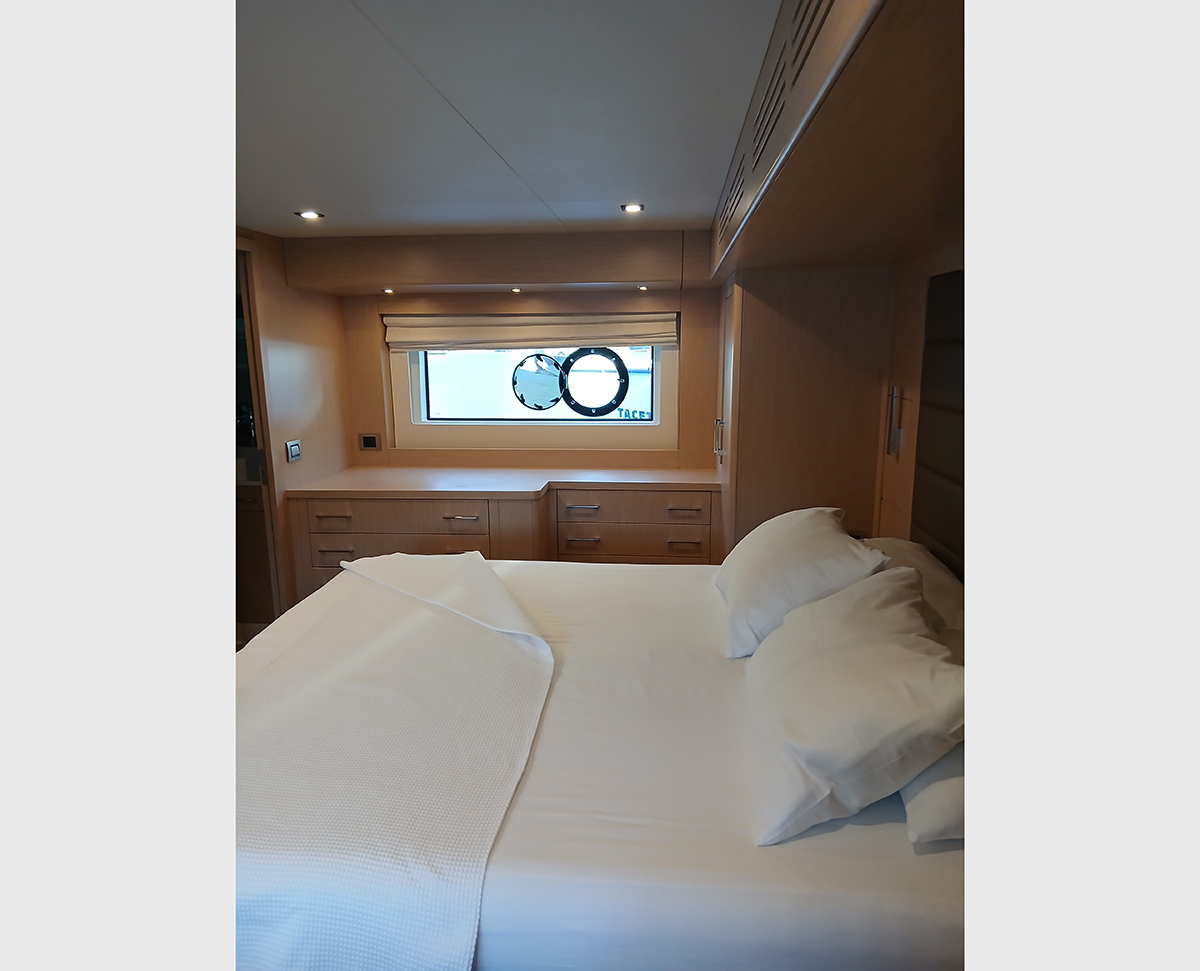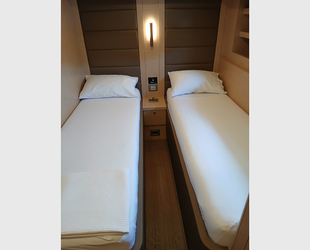 • Crew cabin aft with single bed, head, air-conditioning, pantograph stern door
