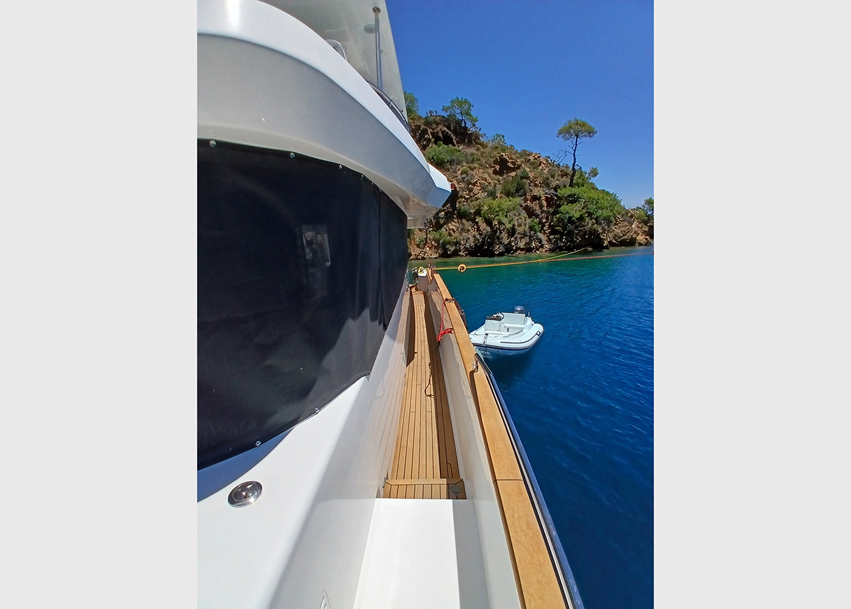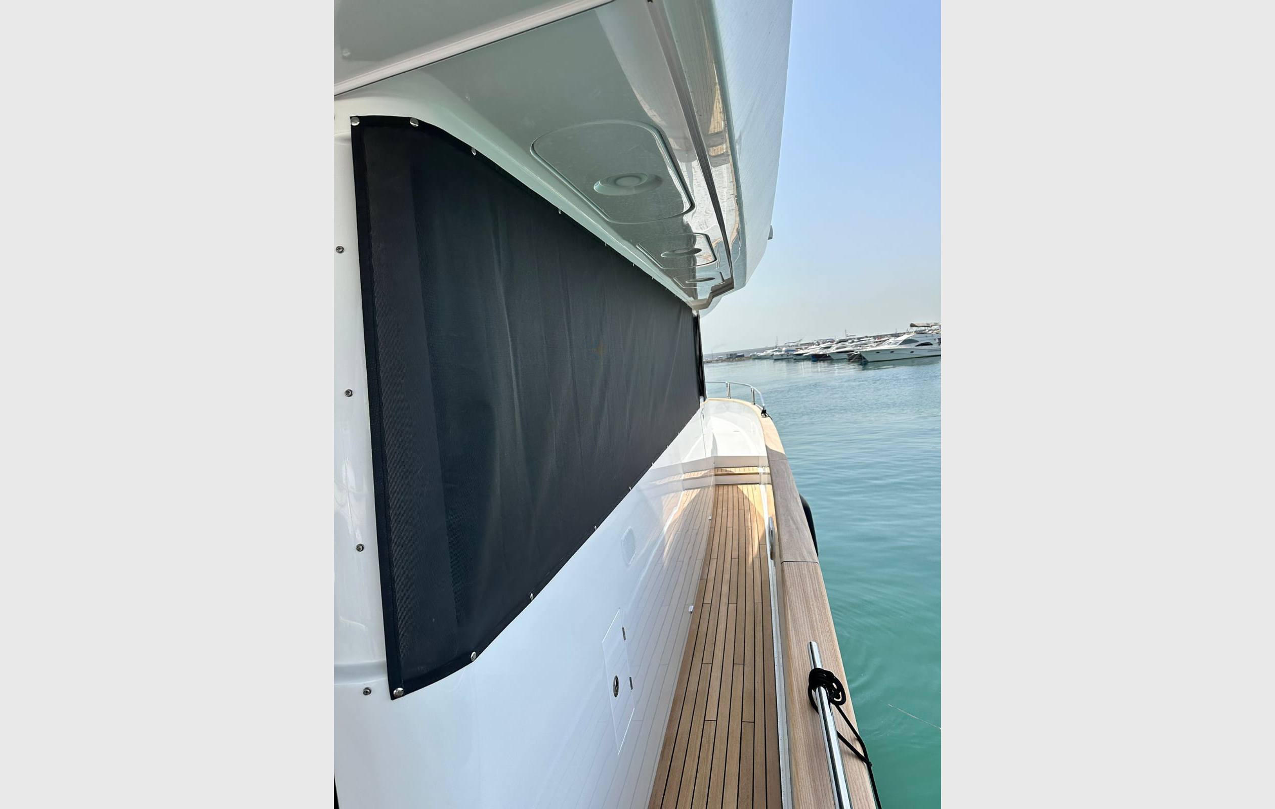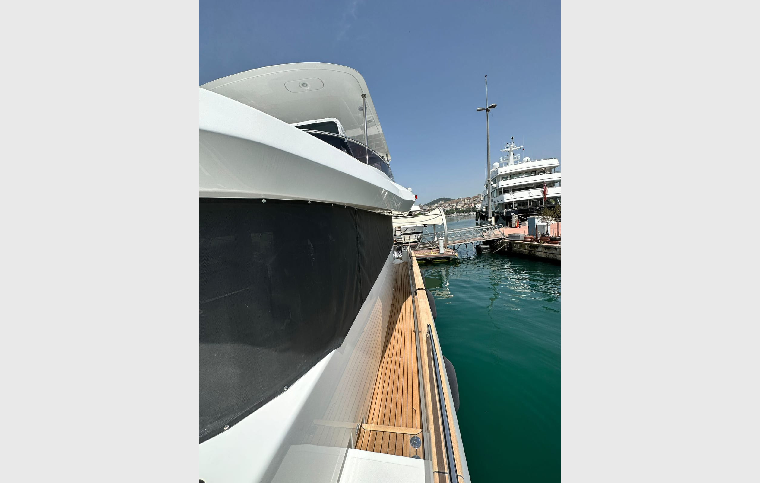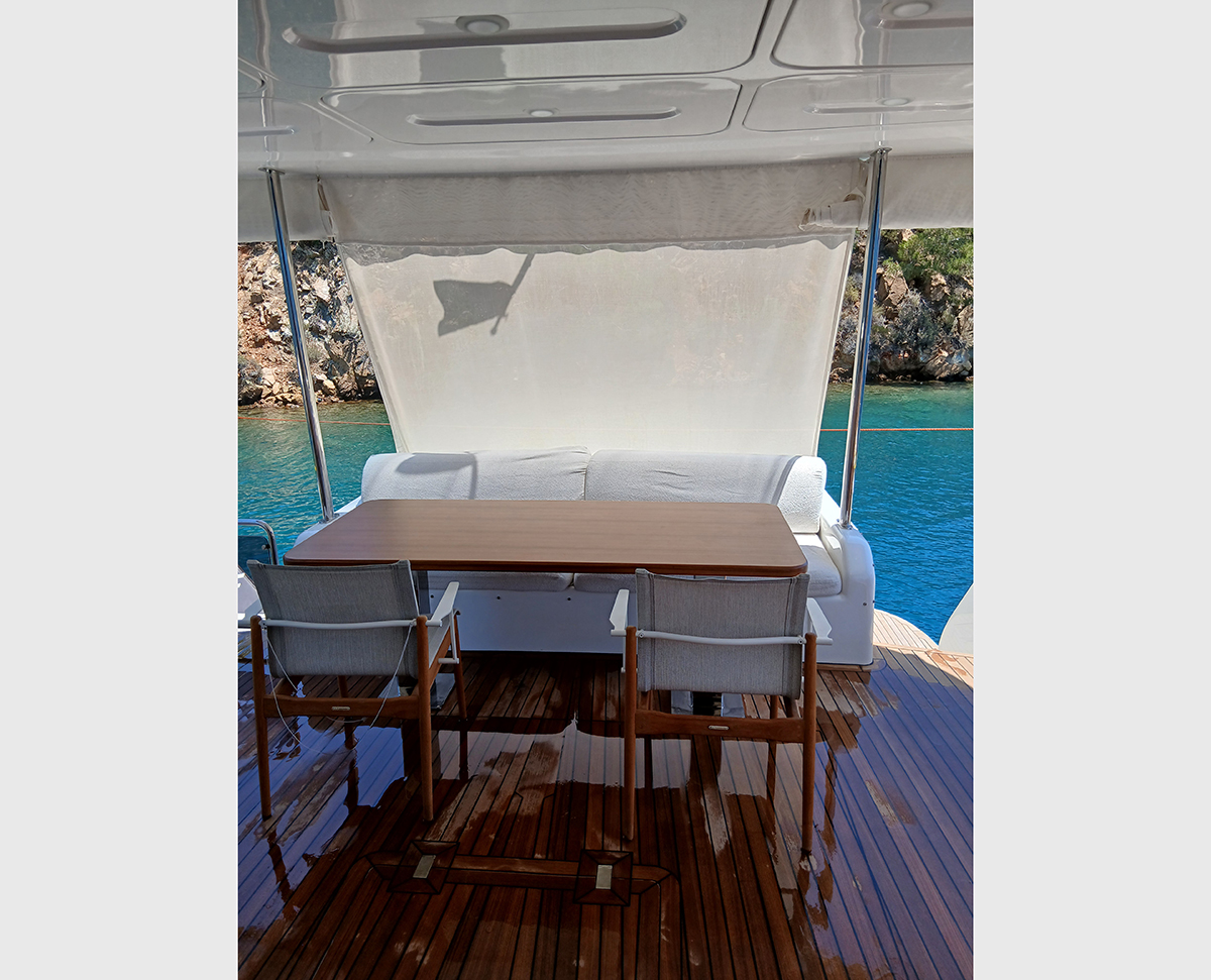 • Teak laid cockpit, foredeck, flybridge, side walkways, bathing platform