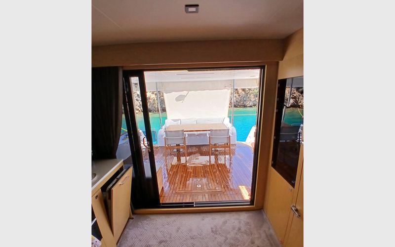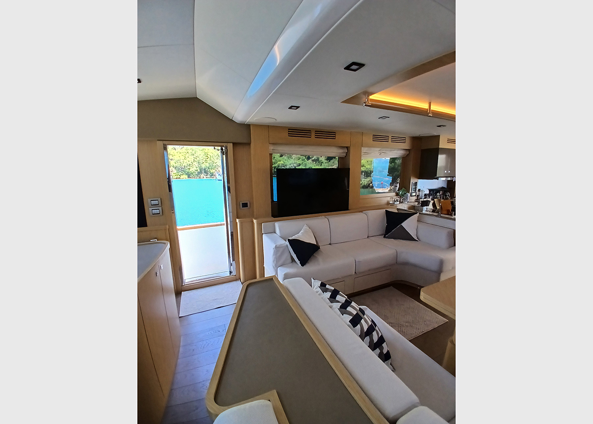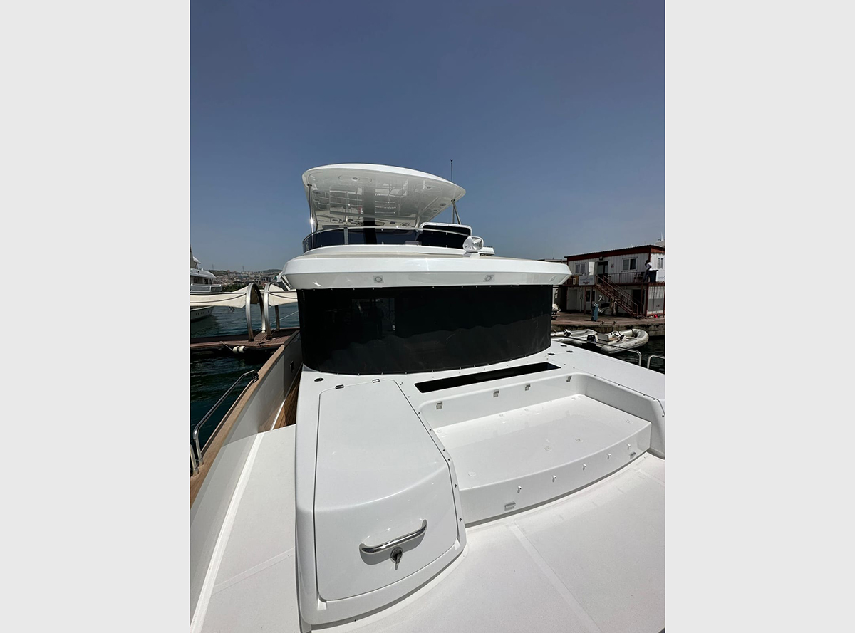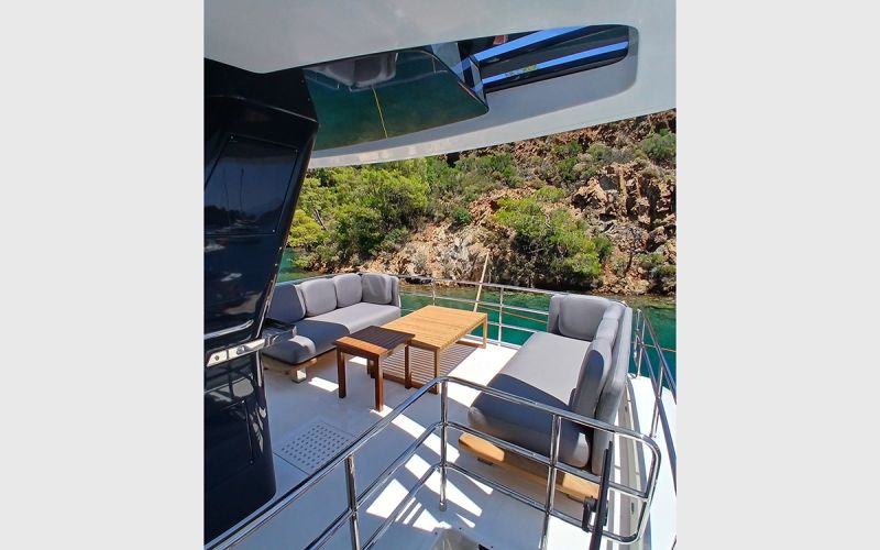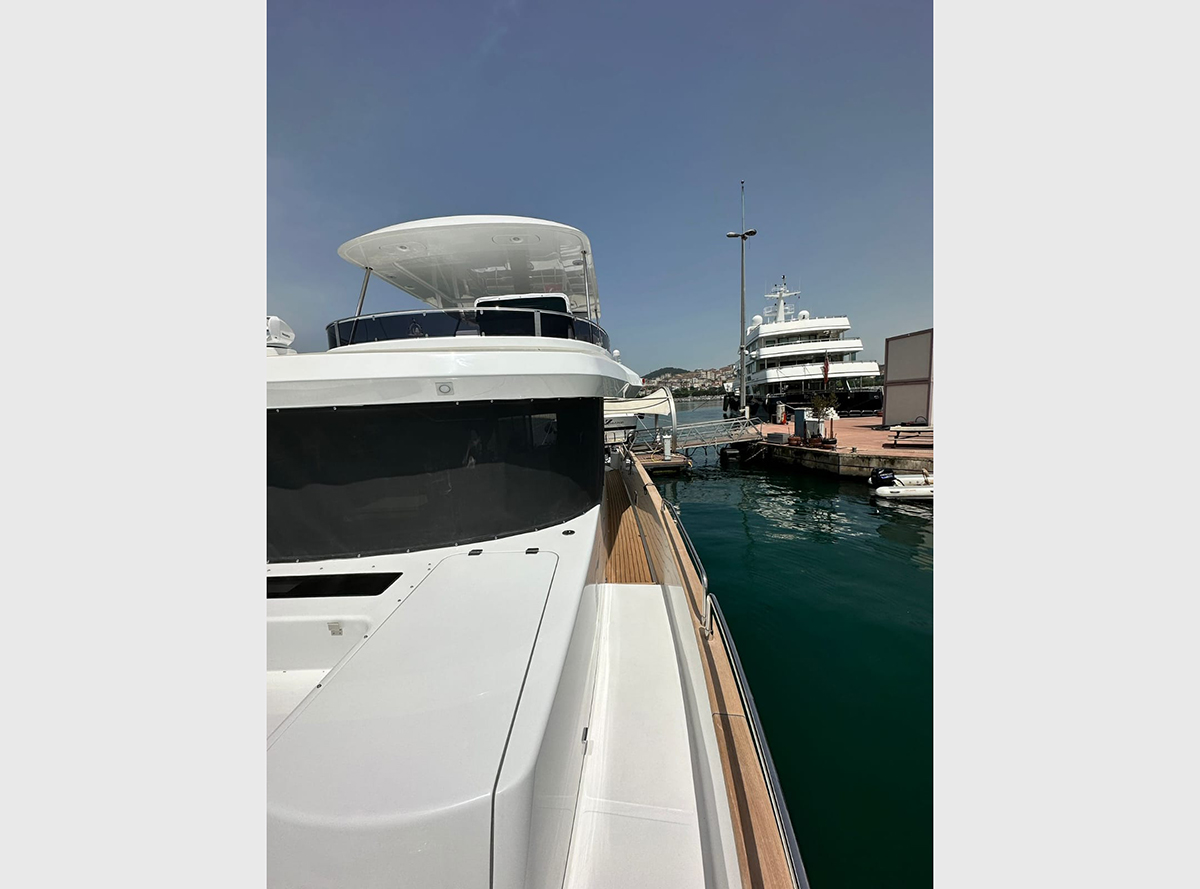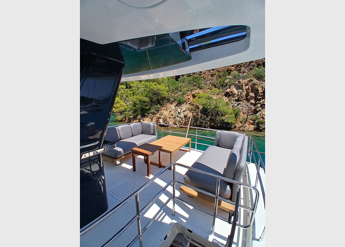 • Teak laid cockpit, foredeck, flybridge, side walkways, bathing platform