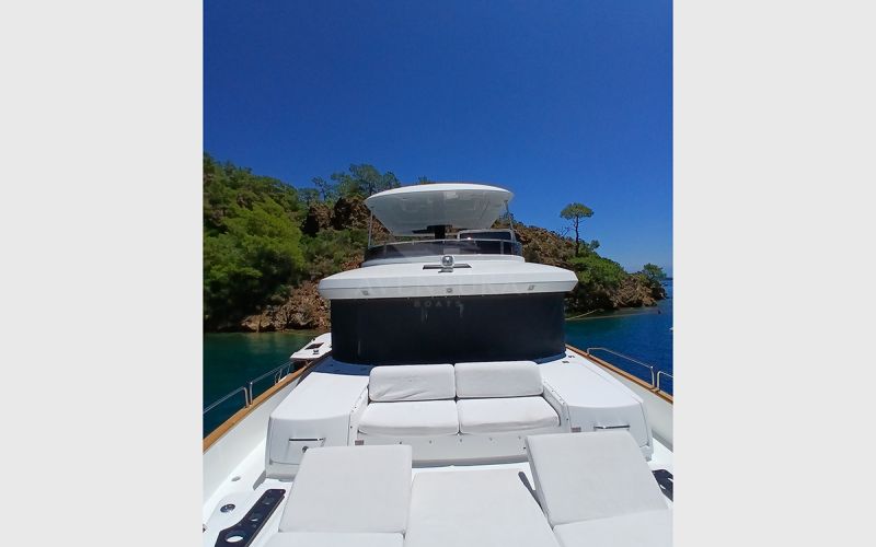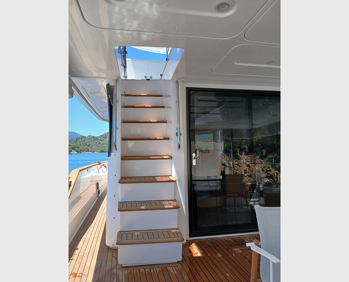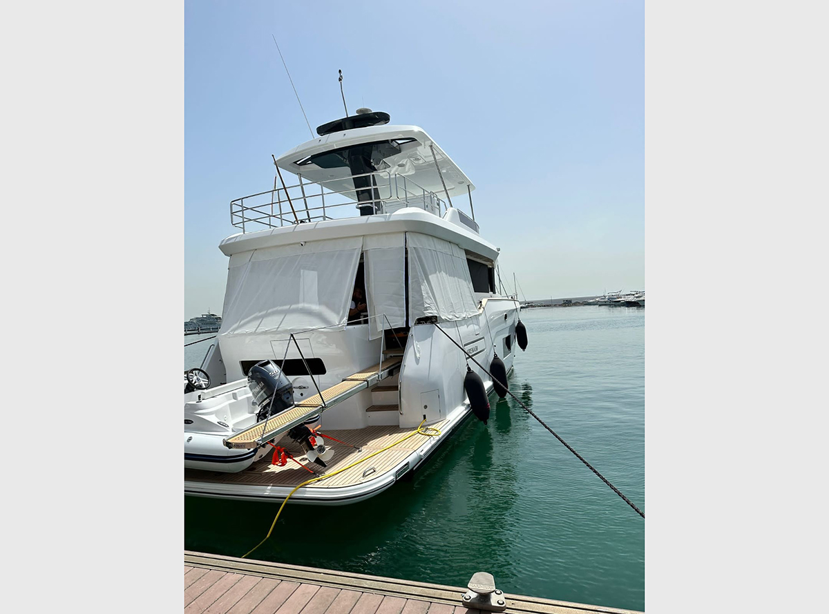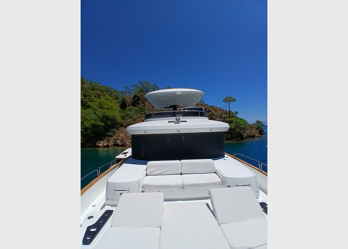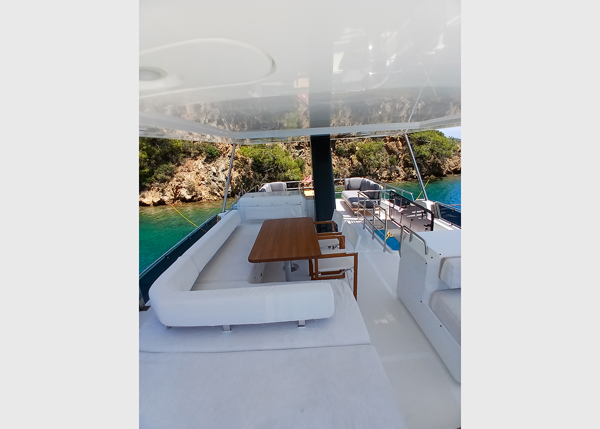 • Teak laid cockpit, foredeck, flybridge, side walkways, bathing platform