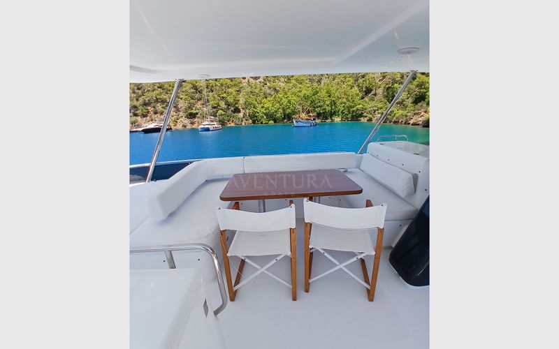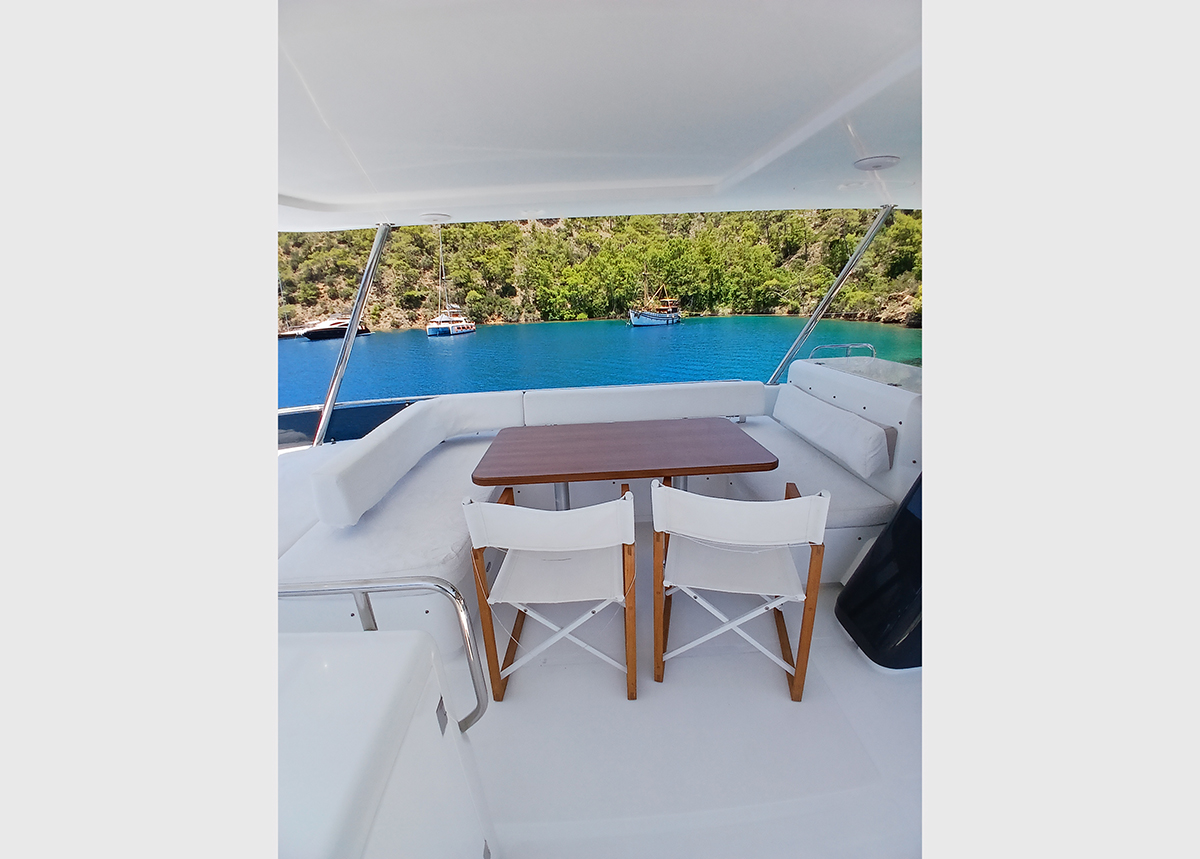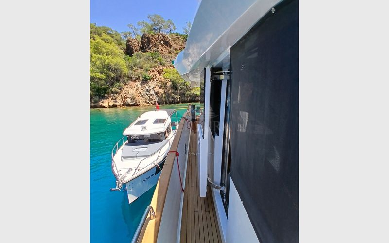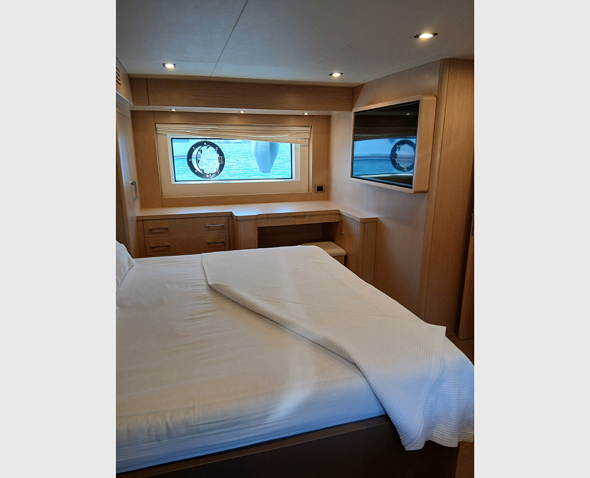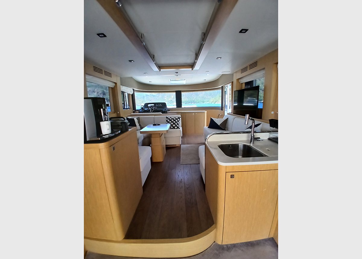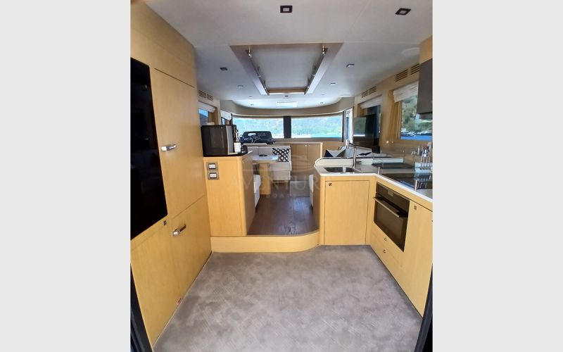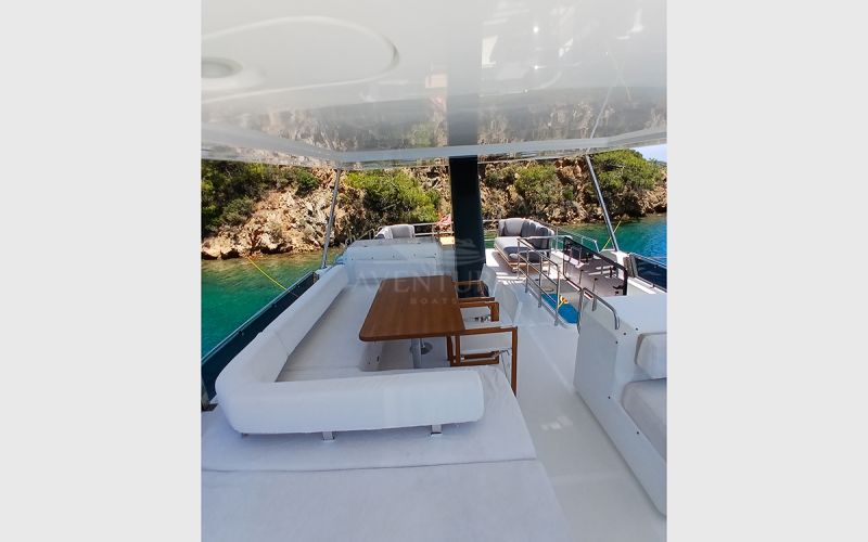 • Teak laid cockpit, foredeck, flybridge, side walkways, bathing platform