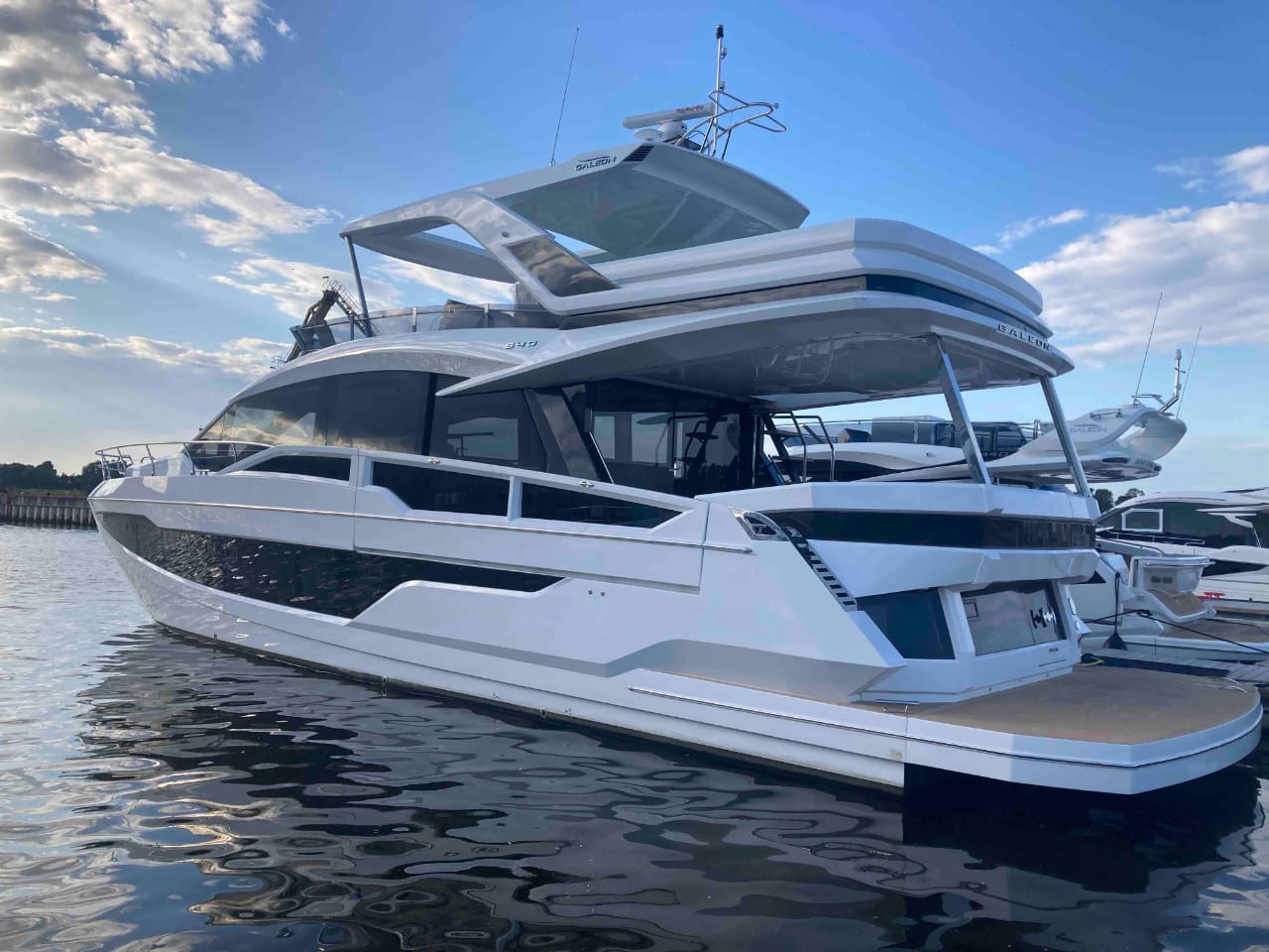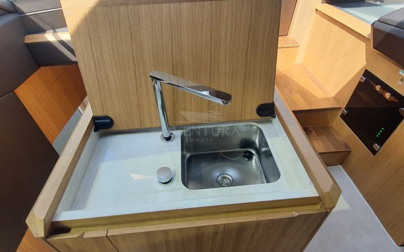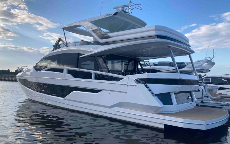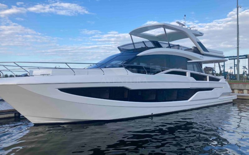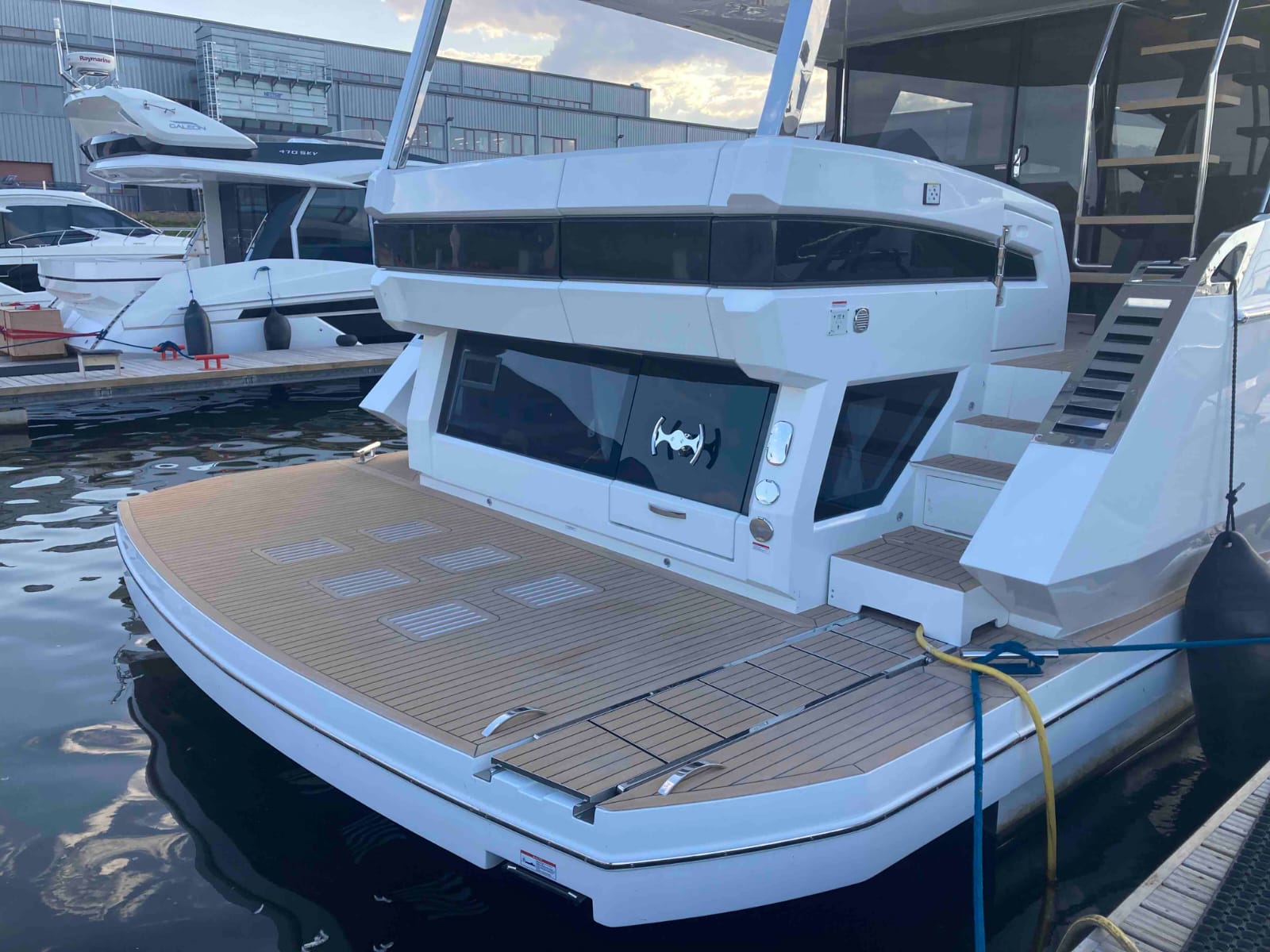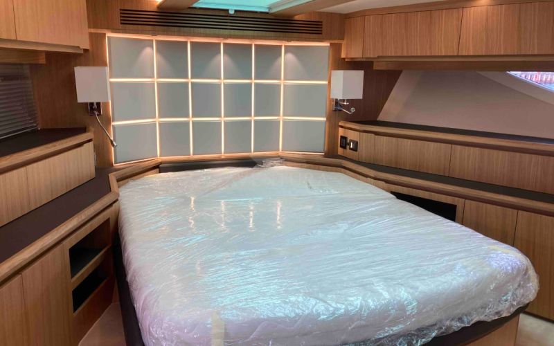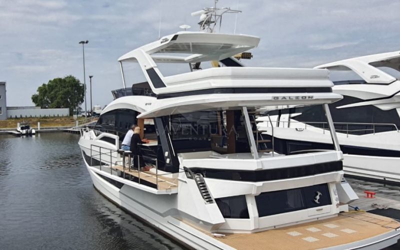 - extended aft cockpi and aft flybridge with enlarged sofas and tables + aft sunshade + aft storage access
