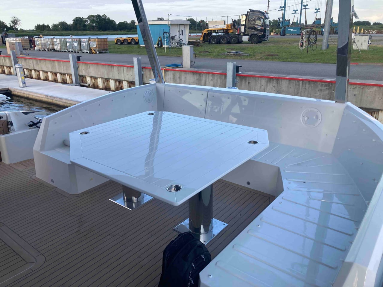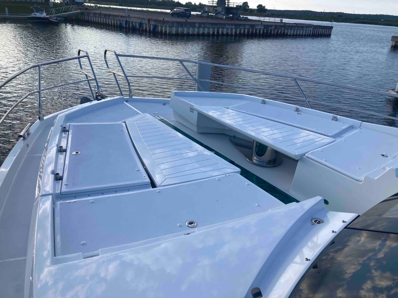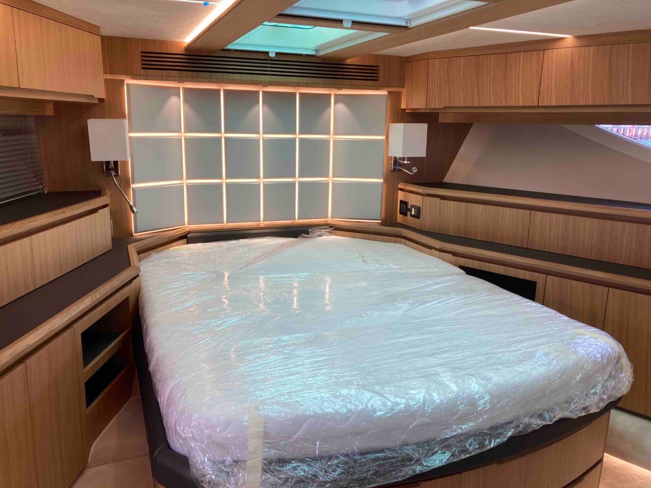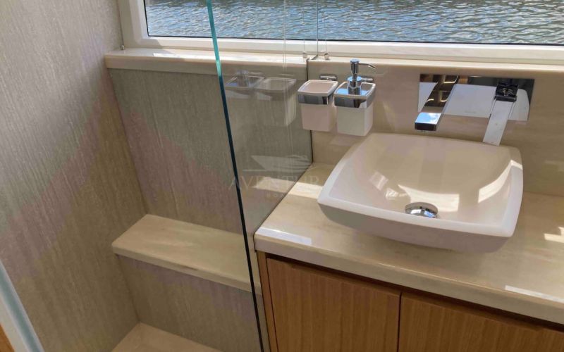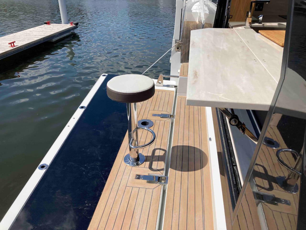 - extended aft cockpi and aft flybridge with enlarged sofas and tables + aft sunshade + aft storage access