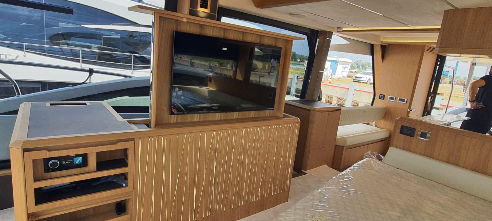 • Electric sliding tv led hd 50'' in aft saloon facing cockpit area