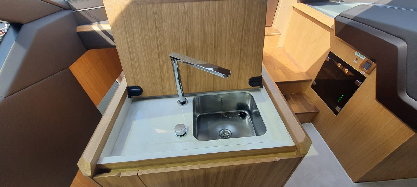 • Drawer fridge in cockpit small sofa