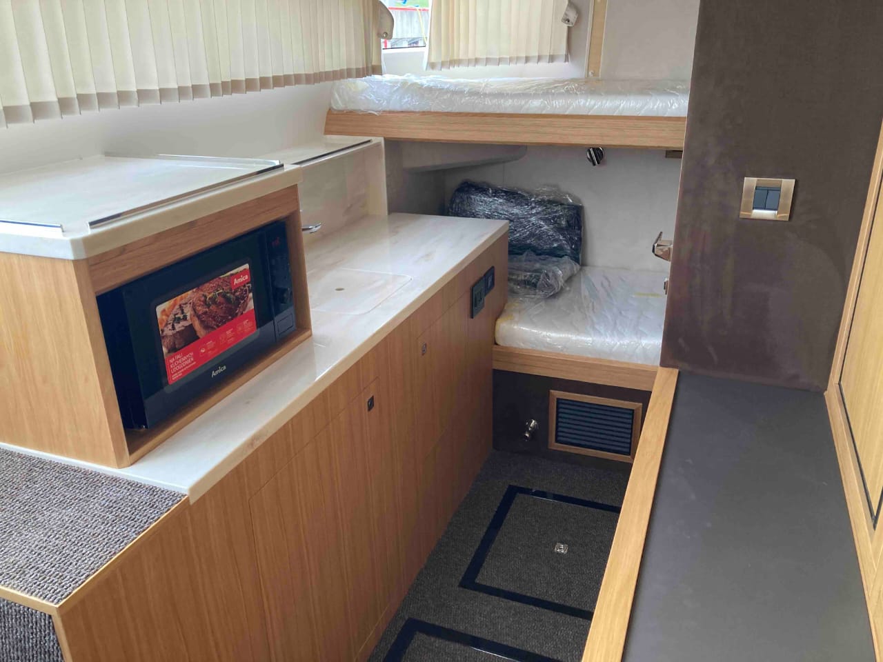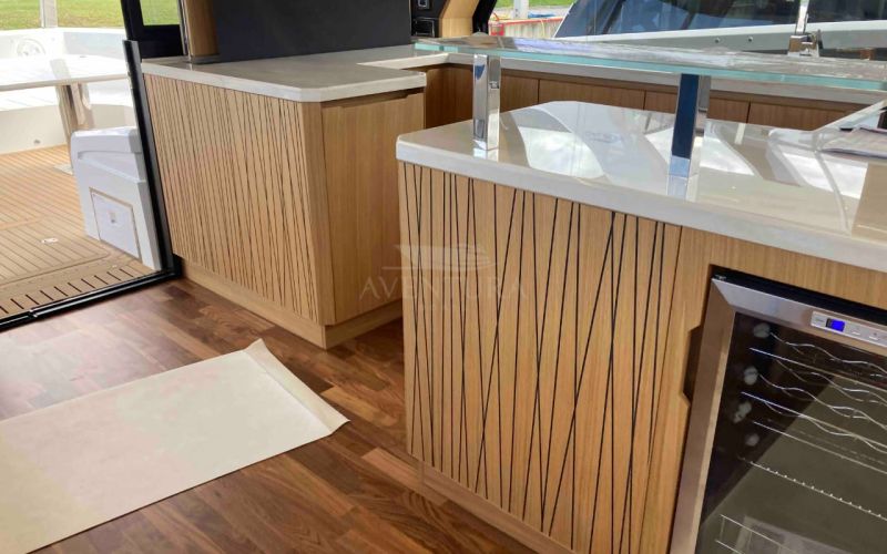 - foldable aft balconies and sliding openable aft side windows, convertible bar area in side cockpit