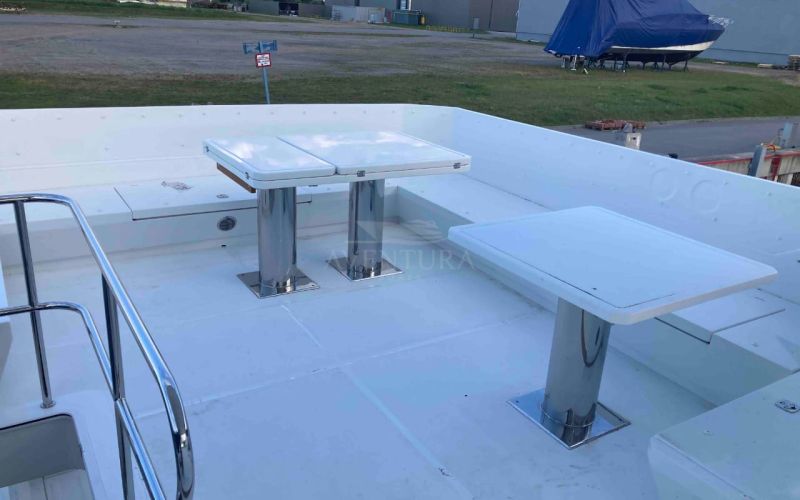 • Fiberglass cockpit and flybridge tables