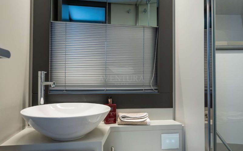 - Teakové paluby v kokpite, na plaveckej plošine a chodníkoch na prove