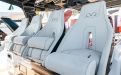 • Krátke polykarbonátové čelné sklo a tri sedadlá za kormidlom