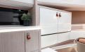 Kožené prvky na nočných stolíkoch, úchytkách dvierok skriniek, madlách, kľučkách dverí a lampách na čítanie