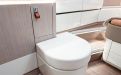 Corian vo farbe Sand Storm na: doske v lobby, podlahe toalety, podlahe sprchy a sedadle v sprche